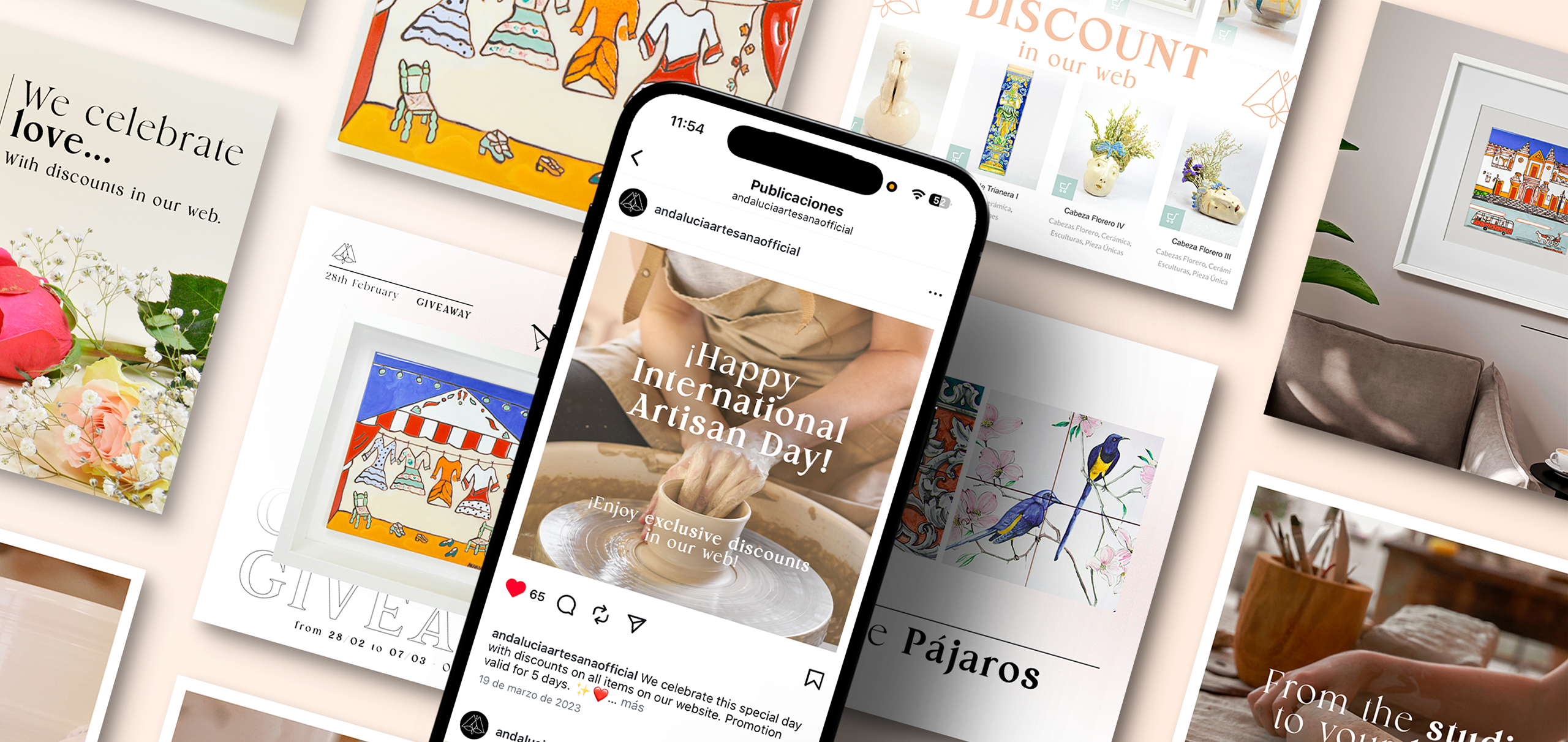 Andalucía Artesana is a made in Spain artisan shop that pays tribute to Andalusian cultural and aesthetic heritage through carefully selected handcrafted pieces. The project required building a visual identity that was coherent, modern, and deeply connected to the values of craftsmanship, authenticity, and handmade production.